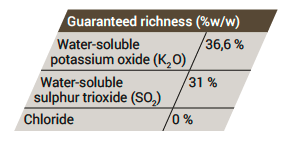 - It provides a high supply of potassium and sulfur, essential for crops.
